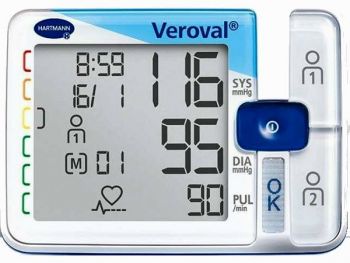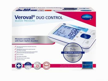 Ηλεκτρονικό πιεσόμετρο βραχίονα Veroval® Duo Control της Hartmann με ιδιαίτερα φωτεινή & ευρεία οθόνη για ευκολότερη ανάγνωση. Προσφέρει ακριβείς μετρήσεις χάρη στην κατοχυρωμένη τεχνολογία Duo Sensor που ενσωματώνει δύο διαφορετικές μεθόδους μέτρησης: την ταλαντωσιμετρική μέθοδο και την μέθοδο του στηθοσκοπίου (Korotkoff).